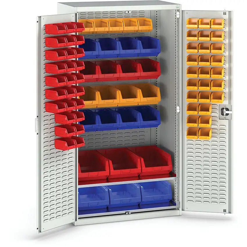 Cubio cupboard housing with perfo door. Constructed from a reinforced steel housing with 1 tonne total capacity and finished with a powder coating. Add components and accessories to complete your cupboard.